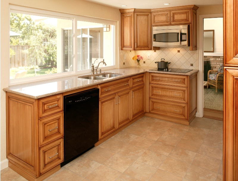 Cherry wood cabinets and Corian counter tops brighten this Sunnyvale kitchen.