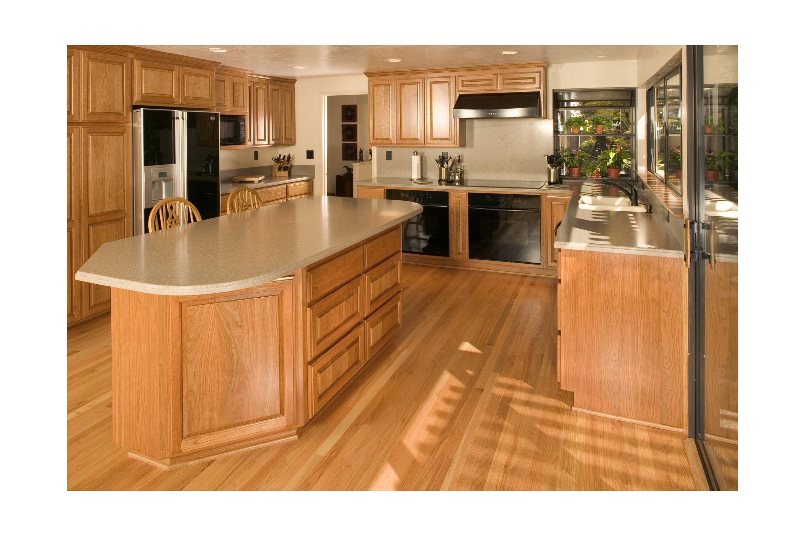 Picture 5: Cherry wood cabinets and Corian counter tops brighten this Sunnyvale kitchen.