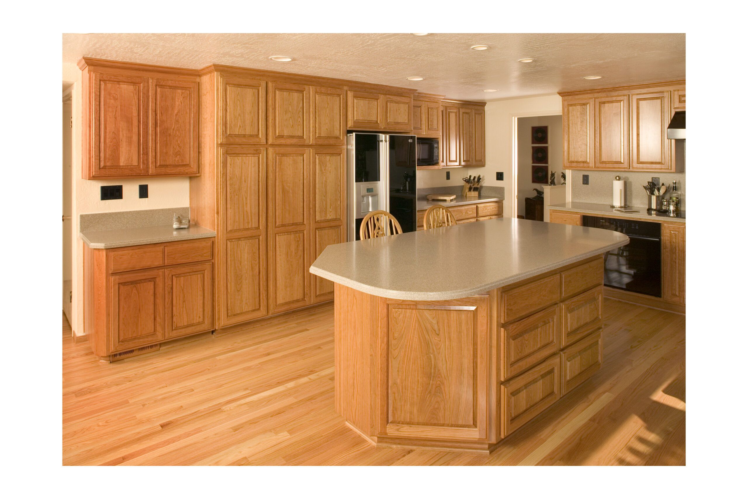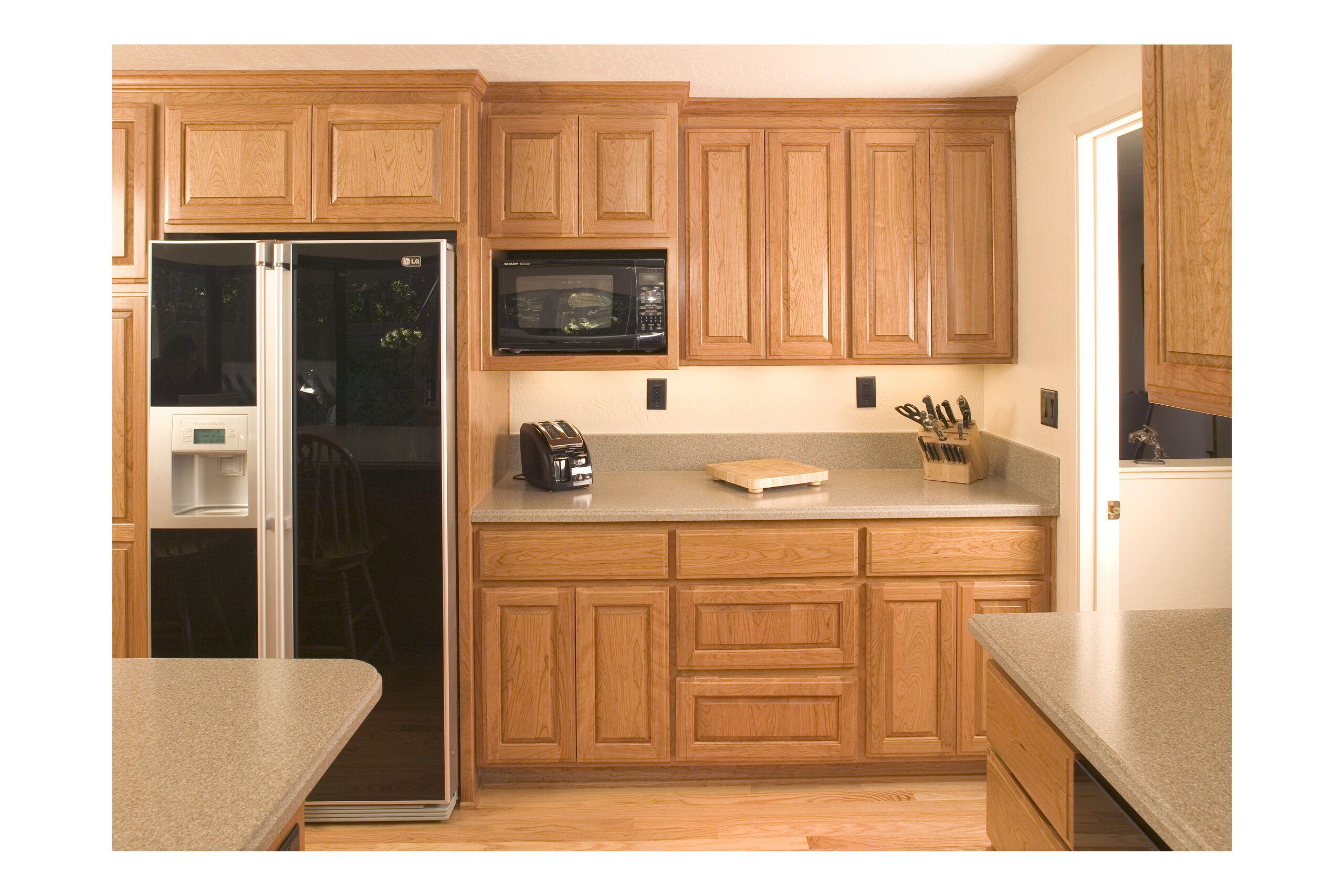 Picture 1: Cherry wood cabinets and Corian counter tops brighten this Sunnyvale kitchen.