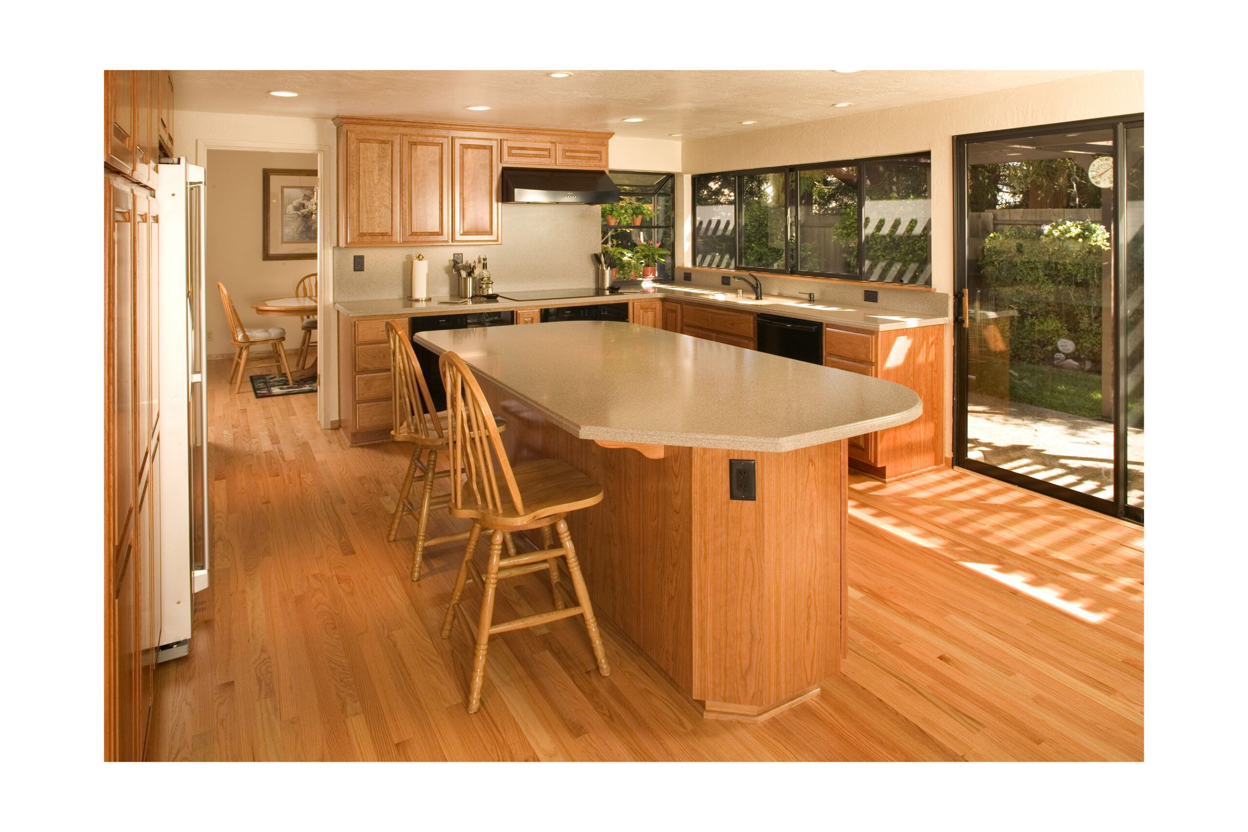 Picture 7: Cherry wood cabinets and Corian counter tops brighten this Sunnyvale kitchen.