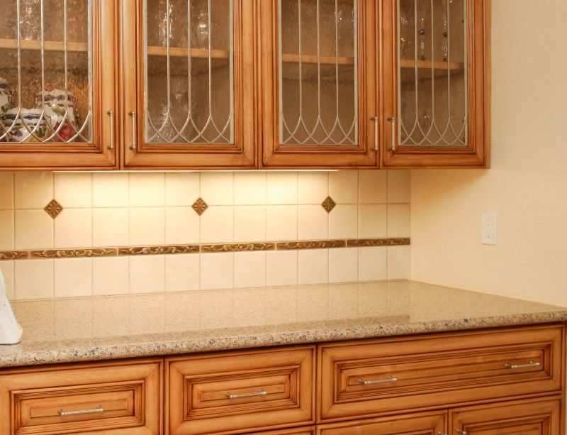 Picture 5: These beautiful glazed maple cabinets feature raised panel doors and glass upper doors in this Santa Clara home.