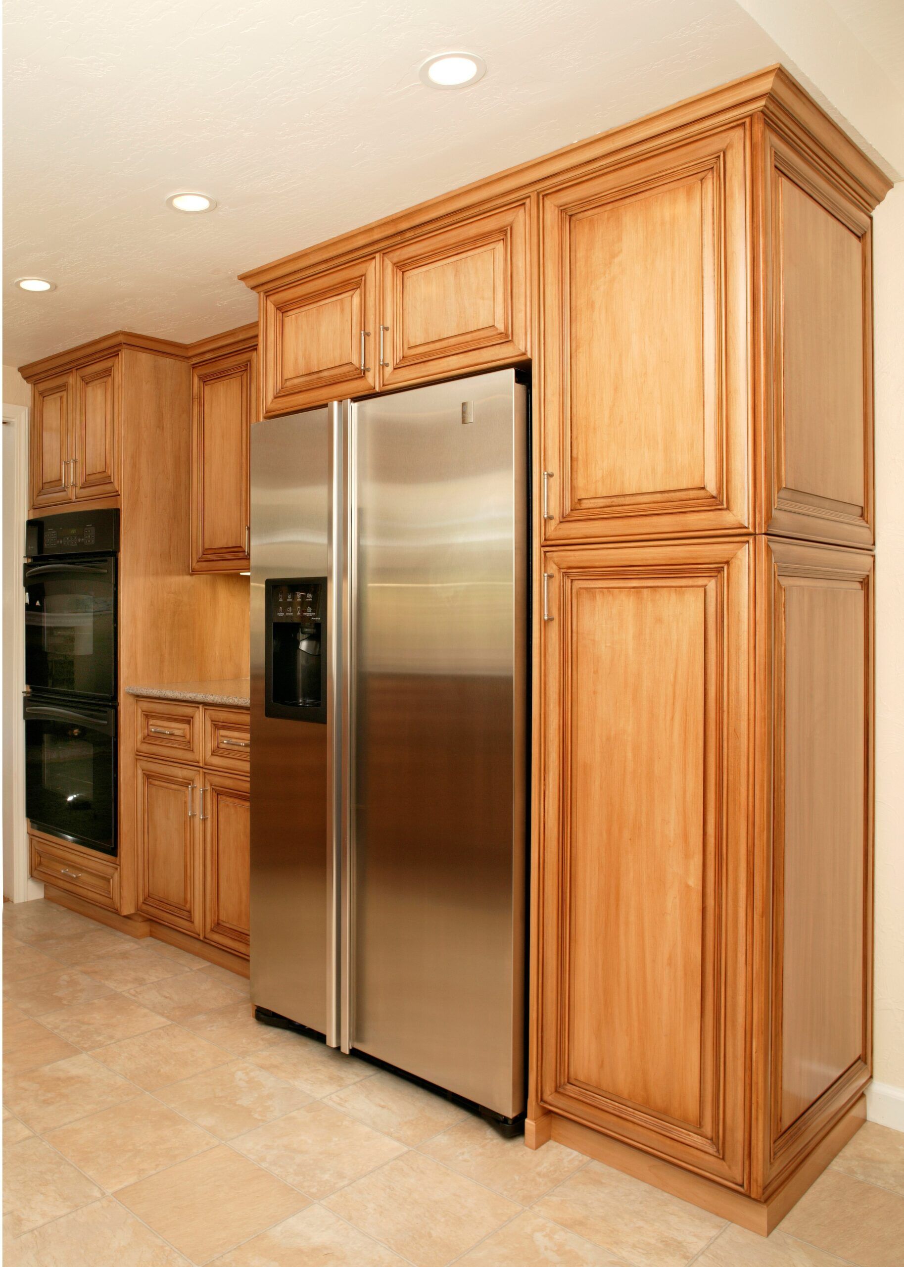 Picture 4: Glazed maple cabinets with raised panel doors and double ovens complete this bright Santa Clara kitchen.